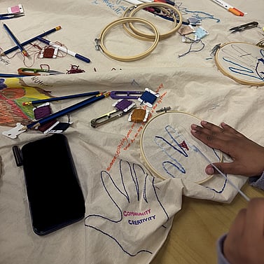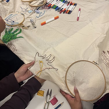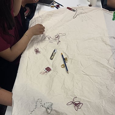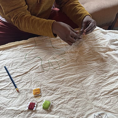 In this way, embroidery becomes more than an art form. It becomes a shared practice of healing. Each thread re-stitches stories of self, belonging, and community. Each gathering becomes an act of resistance, reflection, and reimagining what wellbeing can look like when shaped by our own hands, voices, and collective rhythms of joy.