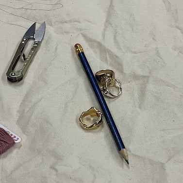 My work reflects on the complexities of life as a brown queer person, connected with memory, healing and decolonisation through a unique blending of South Asian style embroidery and Mughal miniature painting. I layer textures with mirrors, brass charms and an earthy colour palette to reflect my diasporic identity.