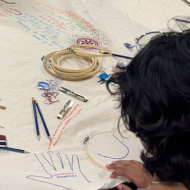 Through these embodied gatherings, participants explore the art of embroidery called Nakshi Kantha as both metaphor and method: a slow, tactile practice through which we stitch our individual narratives into a shared fabric of resistance and care. In this space, art is not decoration. It is resistance, reflection, advocacy, and reclamation. A way of remembering, healing, and imagining futures together.