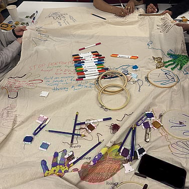 In these moments, artmaking and emotional healing are indistinguishable. Threads of Us becomes an act of community care as much as artistic creation.
